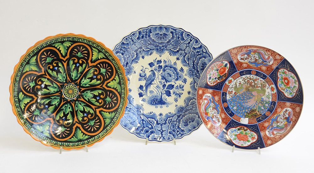 Manifatture diverse. Lotto composto da tre piatti in ceramica con decori e...