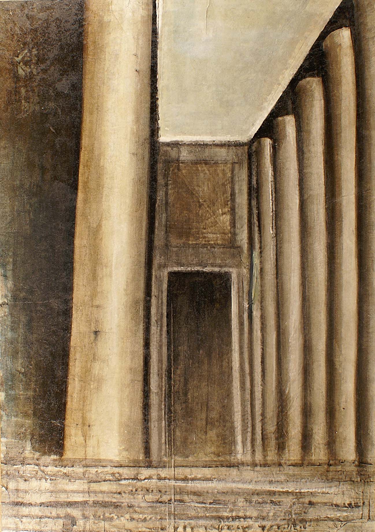 Pittore italiano degli anni 20/30, "Studio architettonico", olio su cartoncino applicato su tela, cm. 135x95 (difetti).