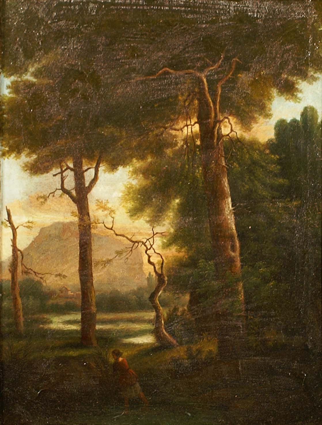 Lot 76 | Scuola italiana della fine del XIX secolo, "Bosco con figura femminile", olio...