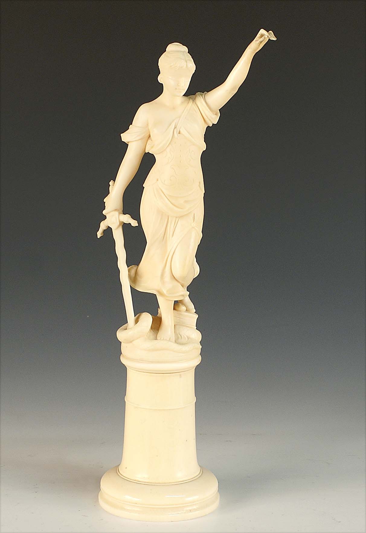 Lot 93 | Scultura in avorio raffigurante la Dea della Giustizia poggiante su base...