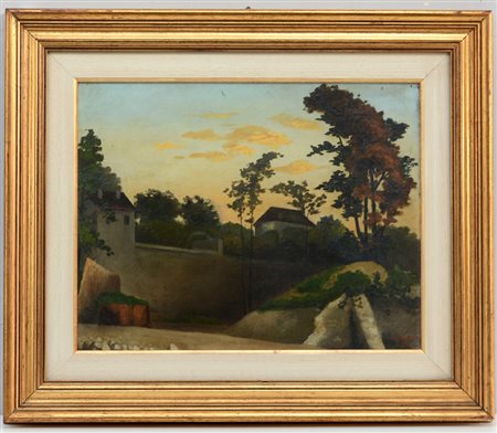 Cavalloni "Paesaggio" 1877, olio su tela (cm 31x40) firmato e datato in basso...