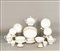 Servizio di piatti in porcellana decorata a policromia con profilo dorato,...