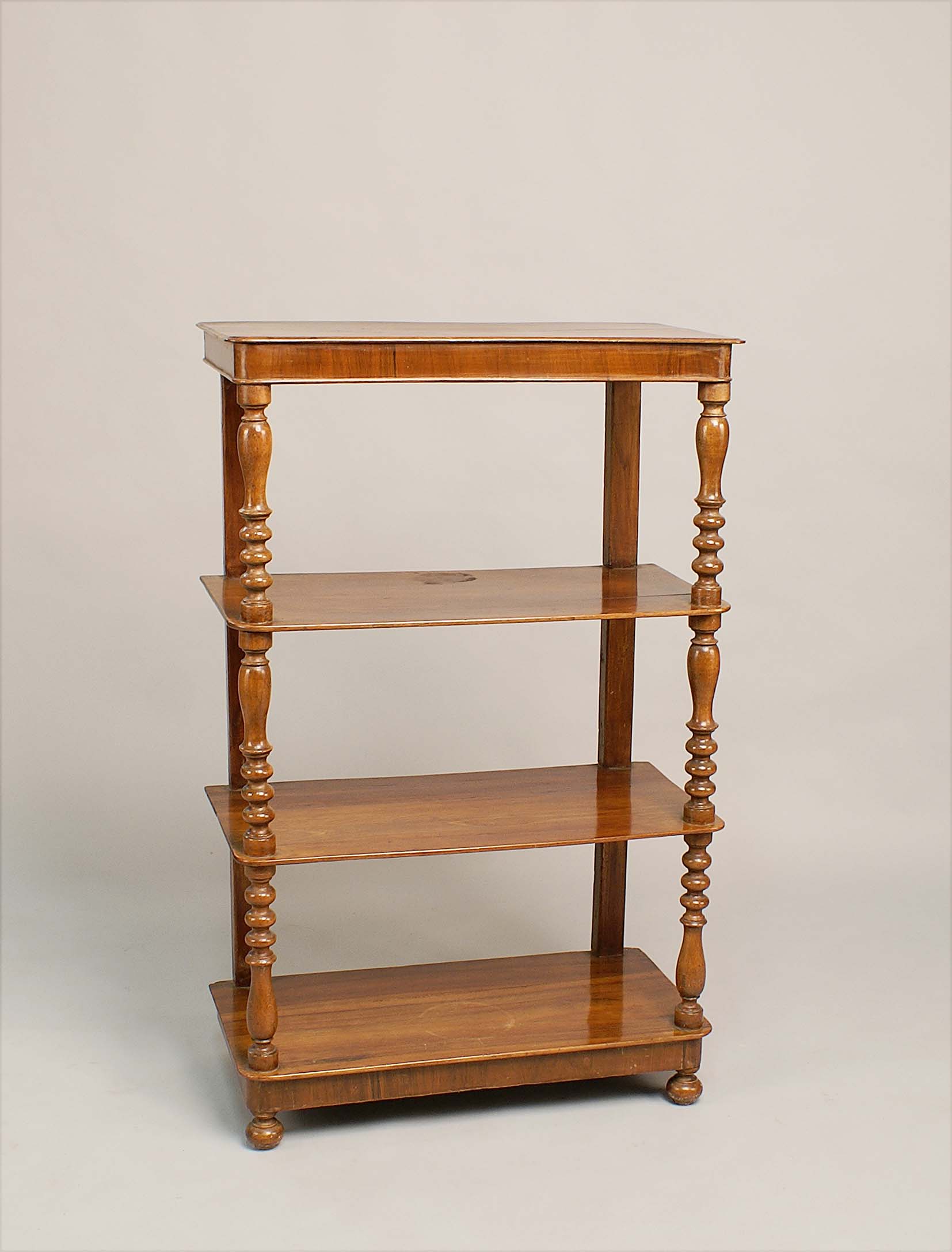 Etagere in noce a tre ripiani delimitate da due colonne tornite, vecchia...