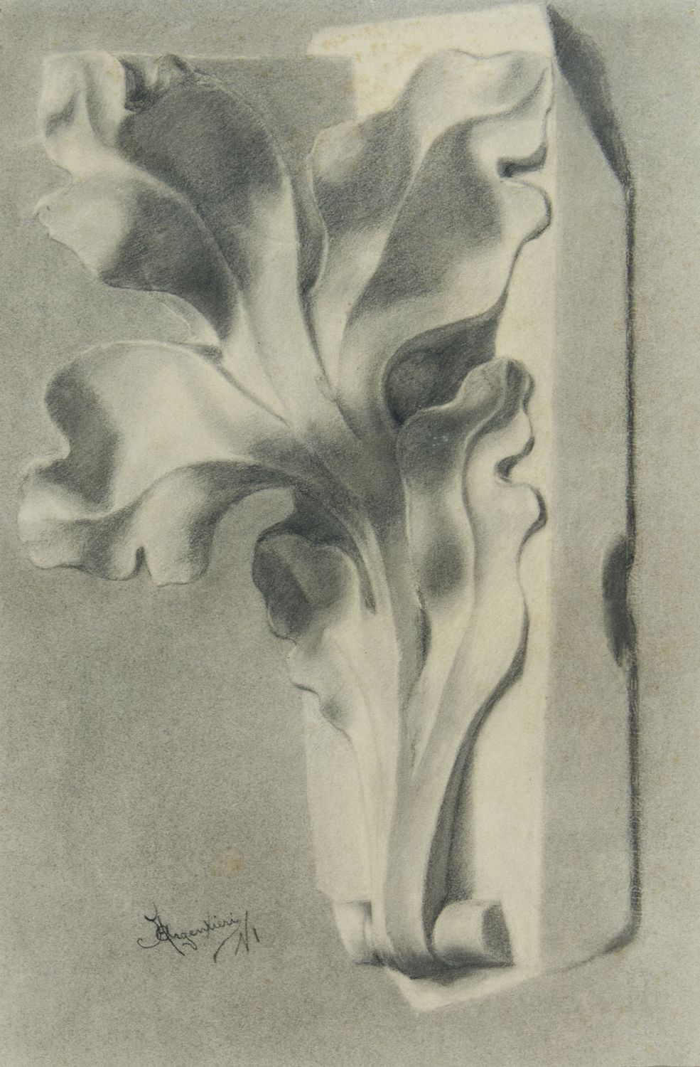 Alfeo Argentieri 1878-1955 "Studio per foglia d'acanto" cm. 46x30 - disegno a matita Firmato b. a s.