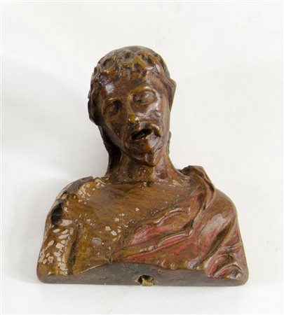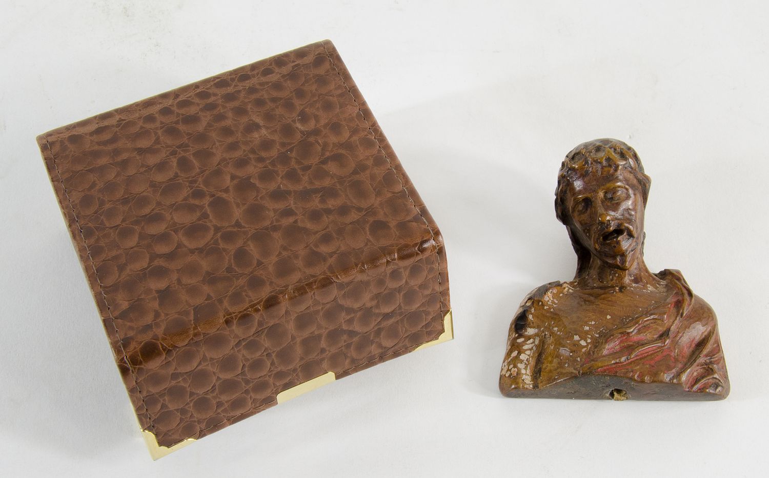 Piccolo busto di Cristo in legno di bosso finemente scolpito. XV secolo. H....