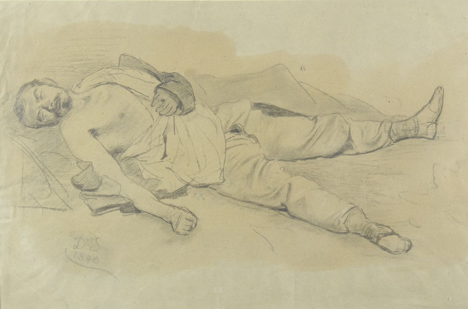 Girolamo Induno 1827-1890 "Il soldato" cm. 30x46 - disegno a matita Firmato b. a s. e datato 1848.