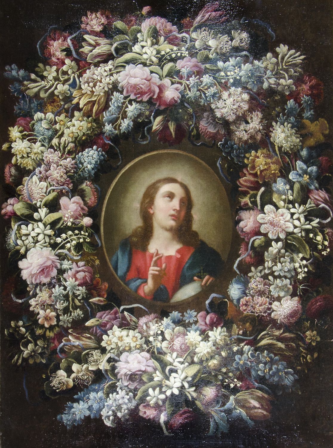 Lot 308 | Felice Fortunato Biggi 1680-1750 "Ghirlanda di fiori con al centro Cristo"...