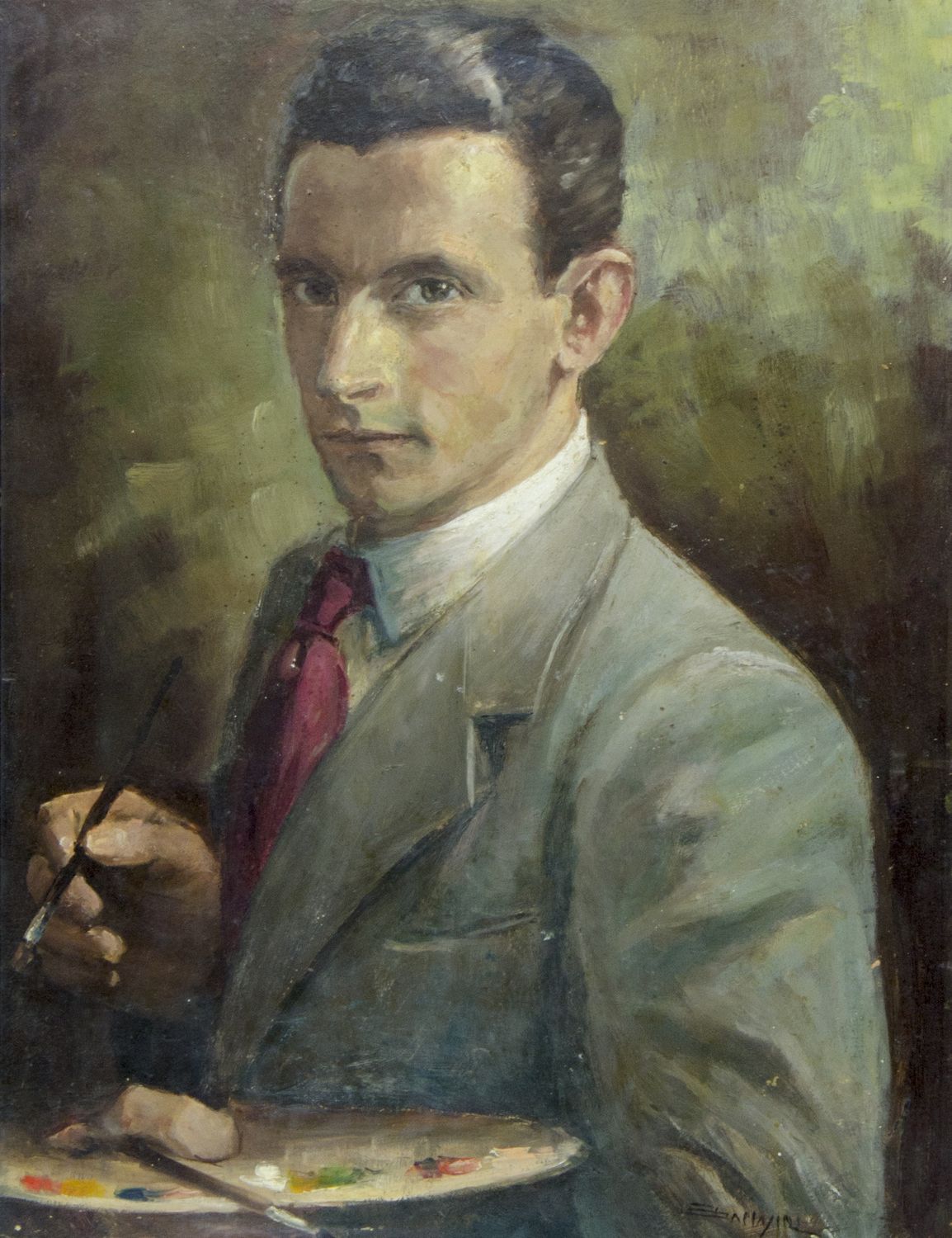 Bruno Ballasini 1913-? "Autoritratto" cm. 45x35 - olio su cartone Firmato b. a d.