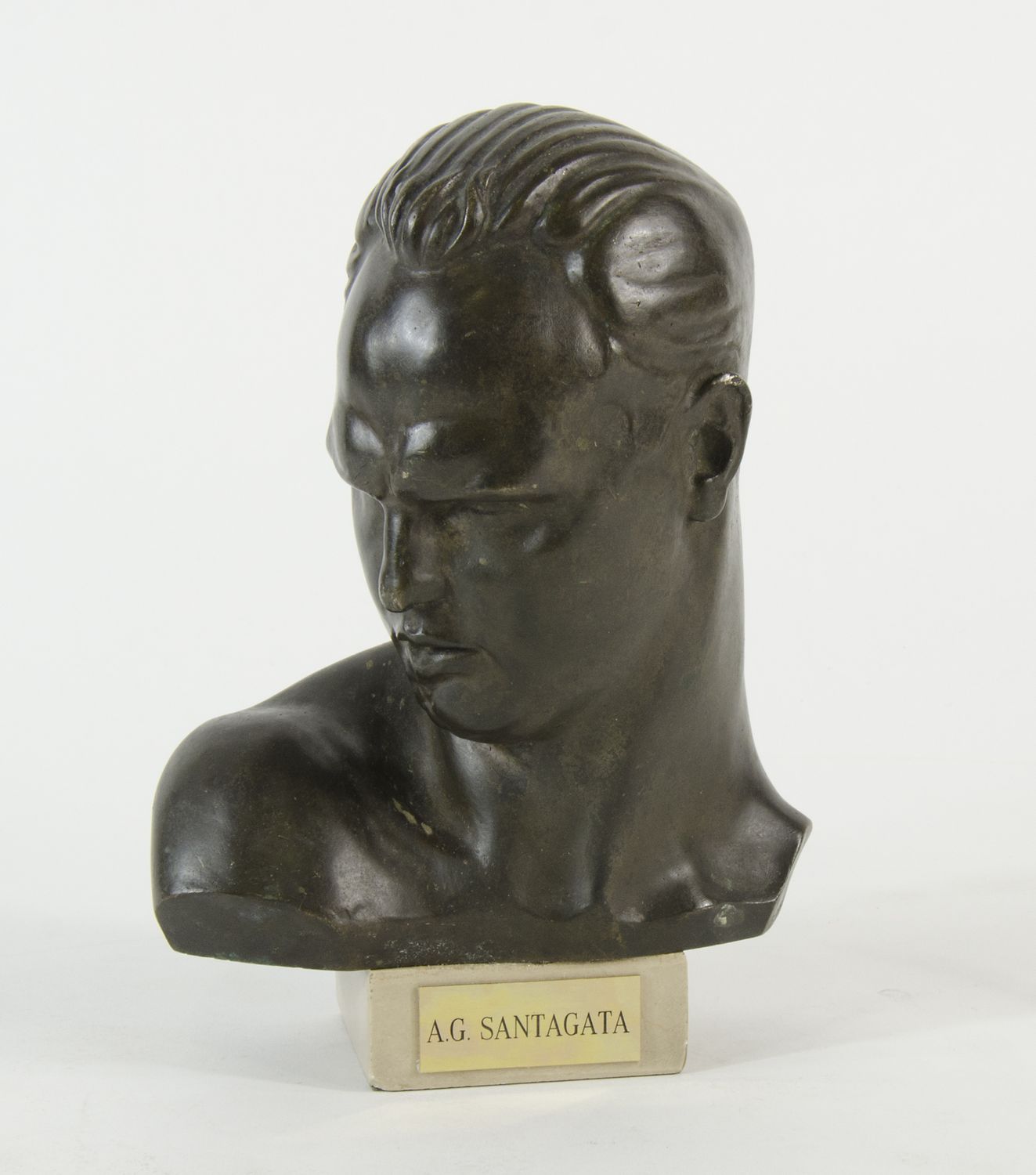 Antonio Giuseppe Santagata 1888-1985 "Profilo di Benito" h. tot cm. 22 - scultura in bronzo a patina marrone su base in marmo. Firma incisa sul fianco.