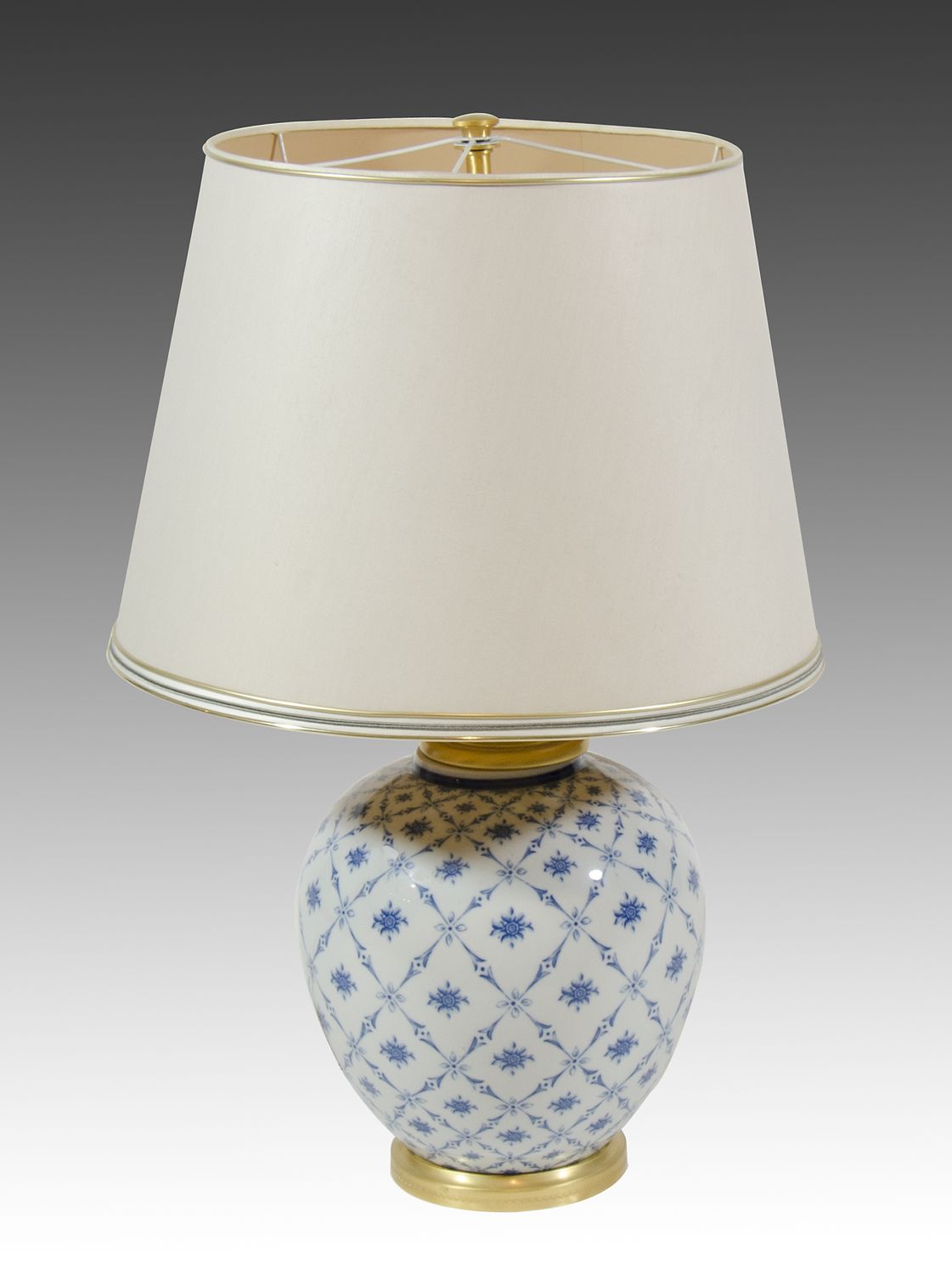 Lampada da tavolo a boccia in porcellana policroma con paralume. H. tot cm. 70.