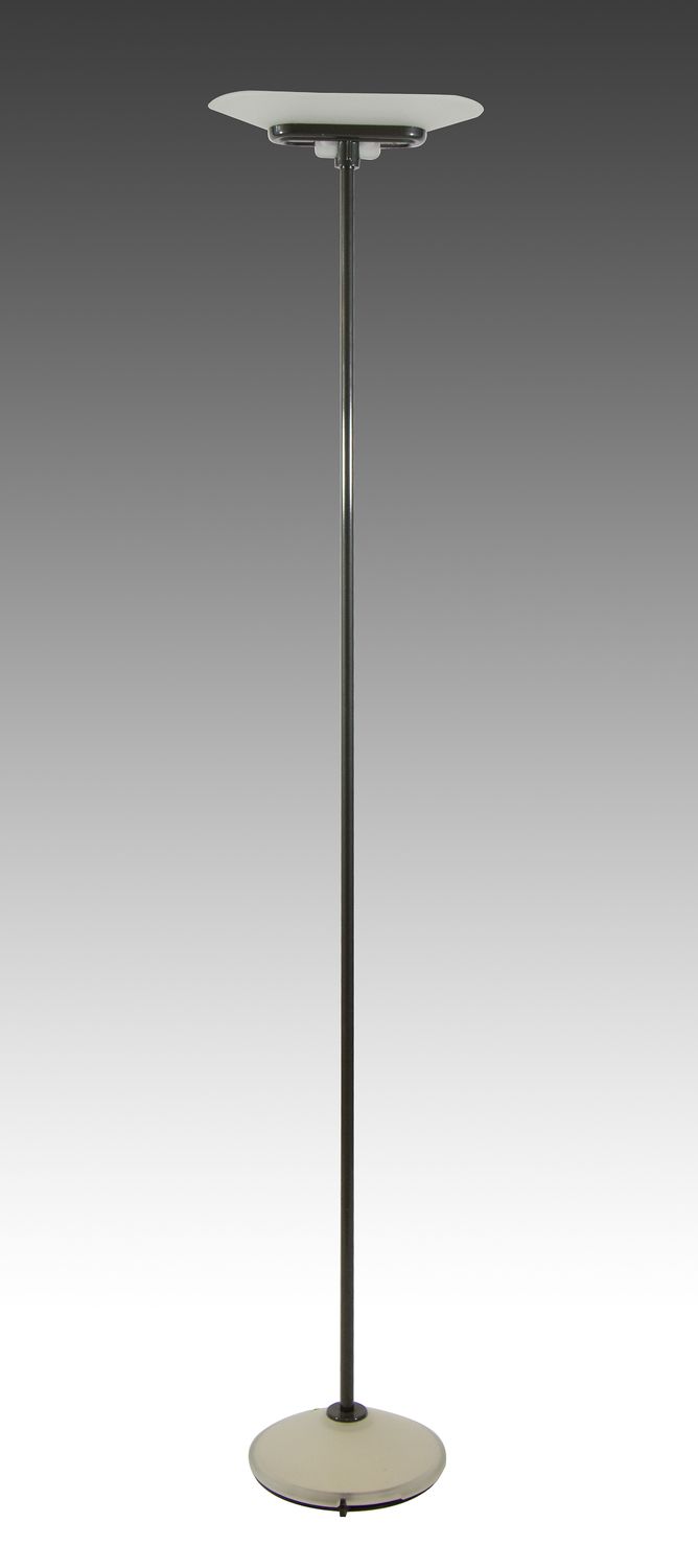 Arteluce: lampada a stelo in metallo e vetro satinato.