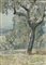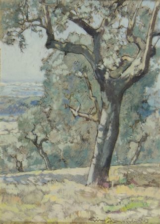 Gino Romiti Livorno 1881-1967 "Ulivi a Montenero" cm. 18x13 - olio su faesite Firmato b. a d. e datato '53. Titolo al retro.
