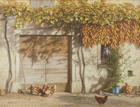 Livio Mozina Trieste 1941 "Cortile carsico" cm. 31x40 - olio su tela Firmato...