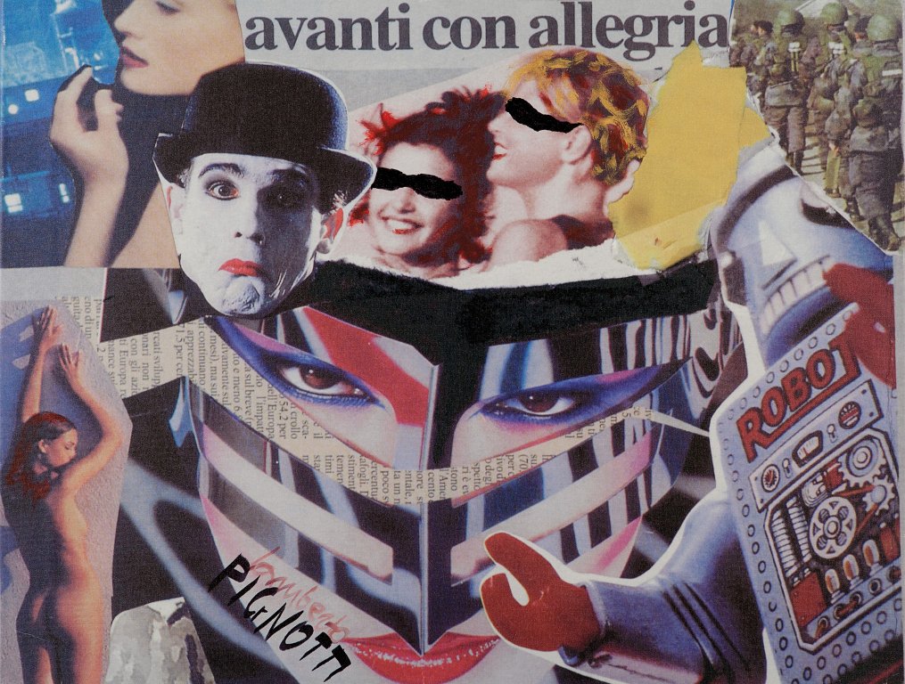 LAMBERTO PIGNOTTI (1926-) Avanti con allegria tela emulsionata cm 70x90...