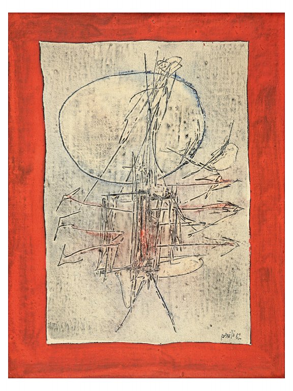 ACHILLE PERILLI (1927-) La parte del diavolo 1962tecnica mista su tela cm...