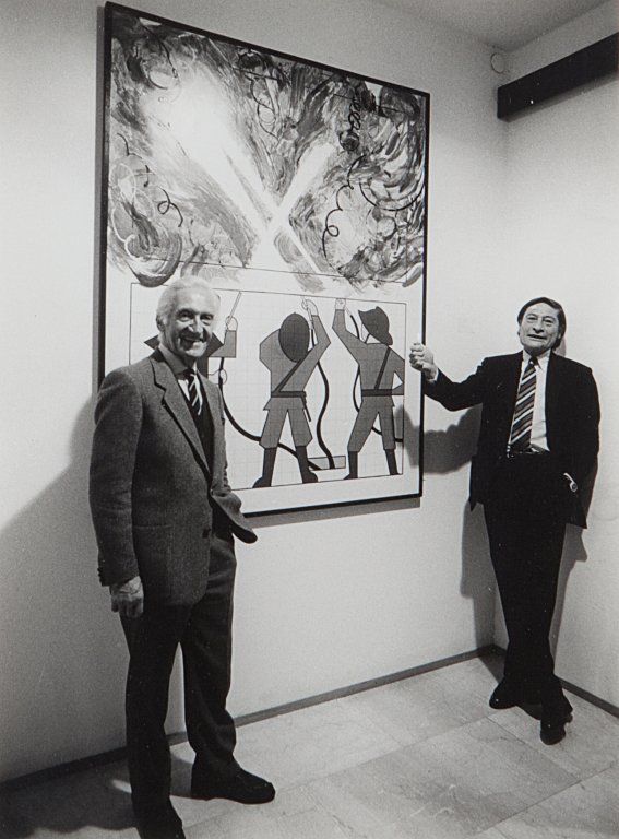 ALDO MONDINO (1938-2005) Pompieri olio su masonite cm 180x140 firmato al...