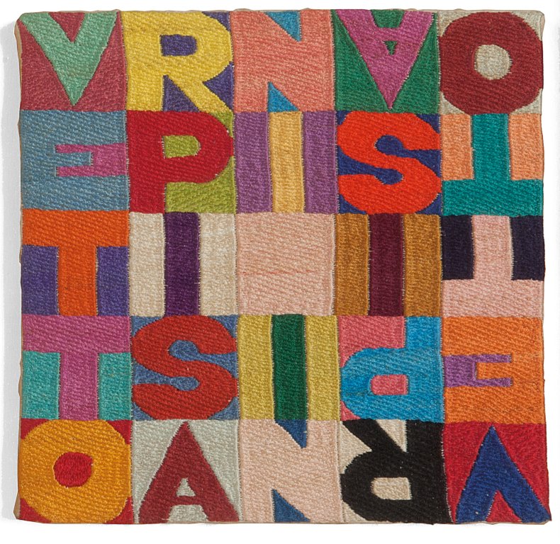 ALIGHIERO BOETTI (1940-1994) Vettor Pisani 1989ricamo cm 20,5x21firmato sul...