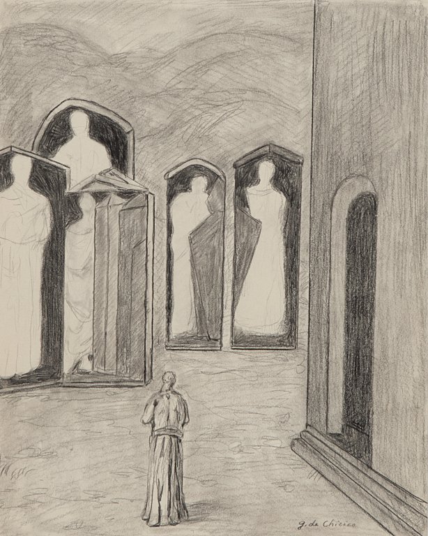 GIORGIO DE CHIRICO (1888-1978) Ricordo di un sogno 1970matita e carboncino su...