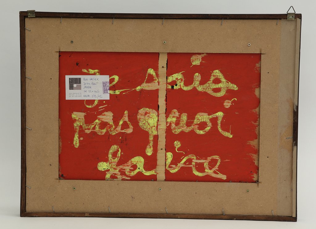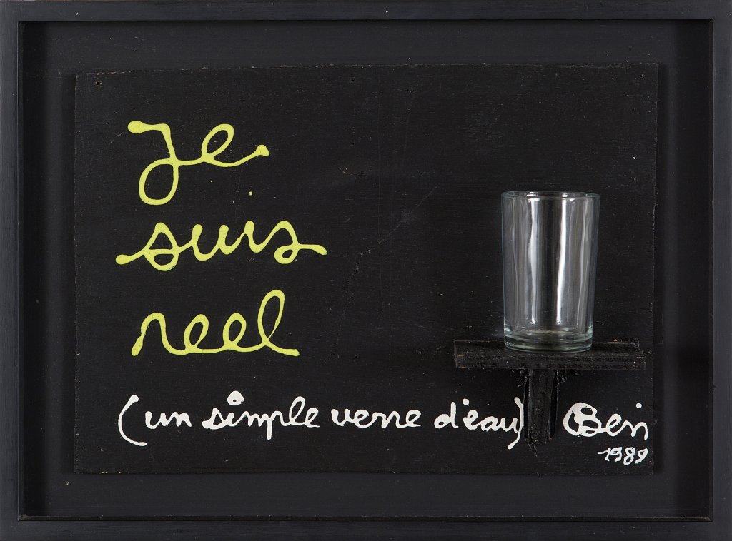 BEN VAUTIER (1935-) Je suis reel 1989acrilico su tavola e bicchiere di vetro...