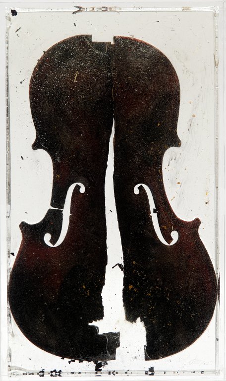 combustione violino bruciato in resina e plexiglass cm 41x25x5