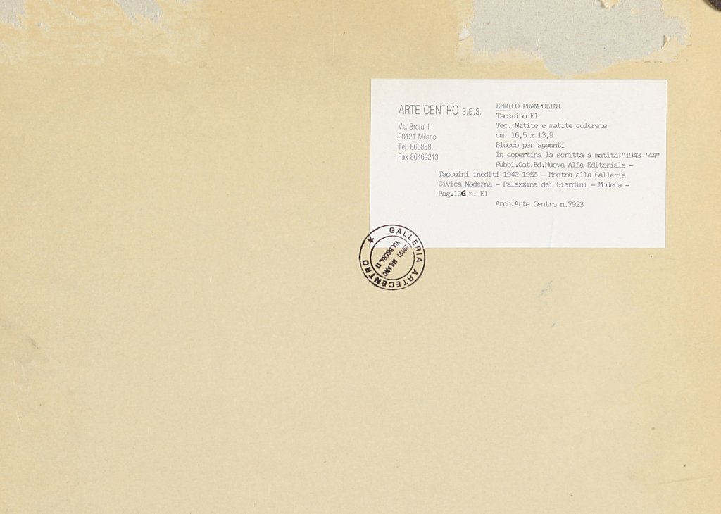 exhibited: 1991, Taccuini inediti 1942-1956, Galleria Civica Moderna, Palazzina dei Giardini, Modena