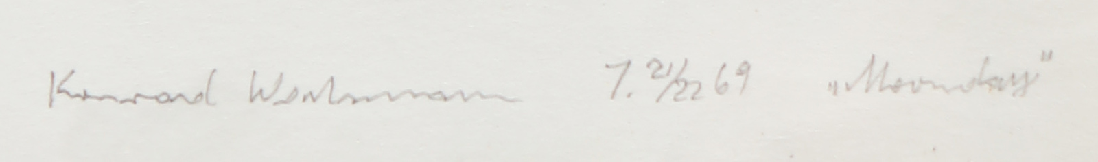 WACHSMANN KONRAD (1901 - 1980) Monday. 1969. Lithograph. Cm 50,00 x 70,00. Signature, title and year lower in pencil right. Dry Stamp Issues Dump the lower right.. Cornice presente