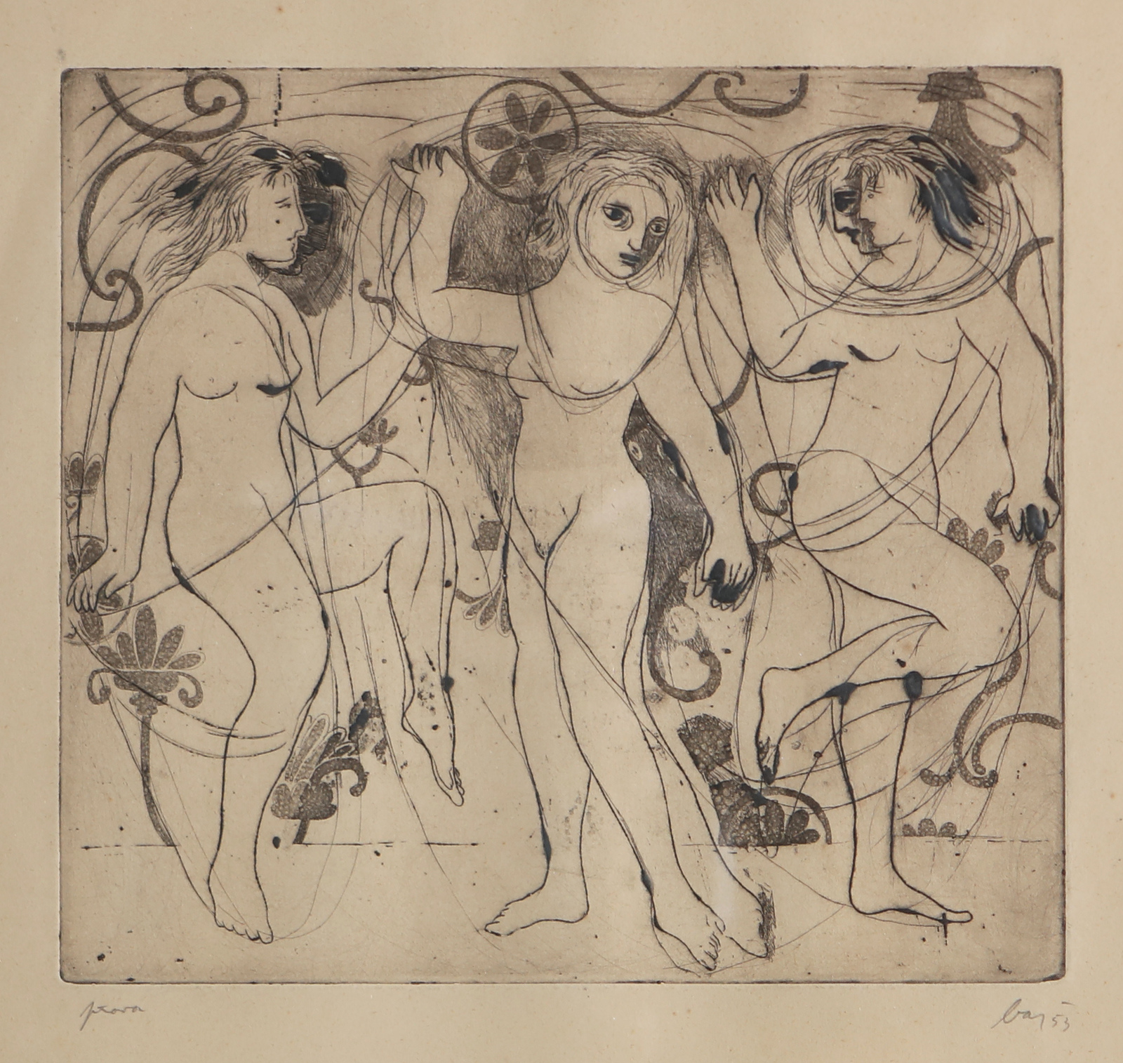 BAJ ENRICO (1924 - 2003) Untitled. 1953. Etching. Cm 34,50 x 49,00. P.A. Edition, signature and year lower in pencil. sheet size: 22x24 cm. Cornice presente