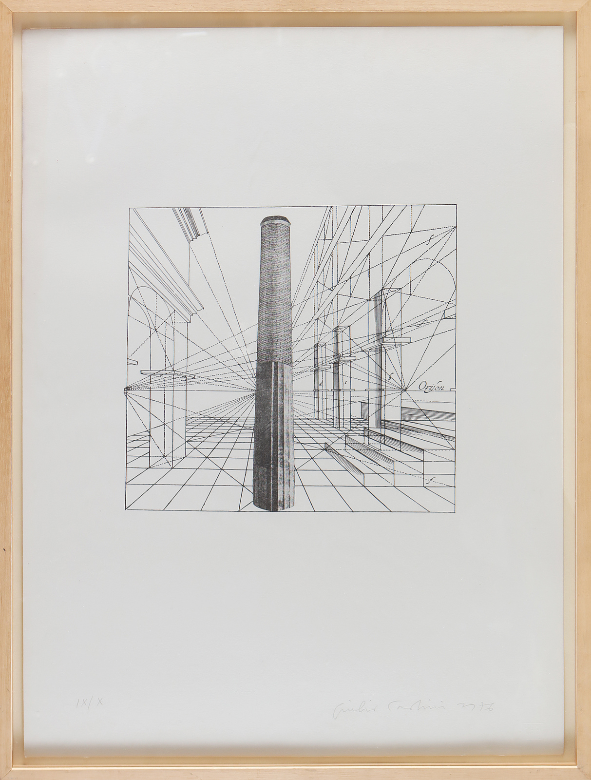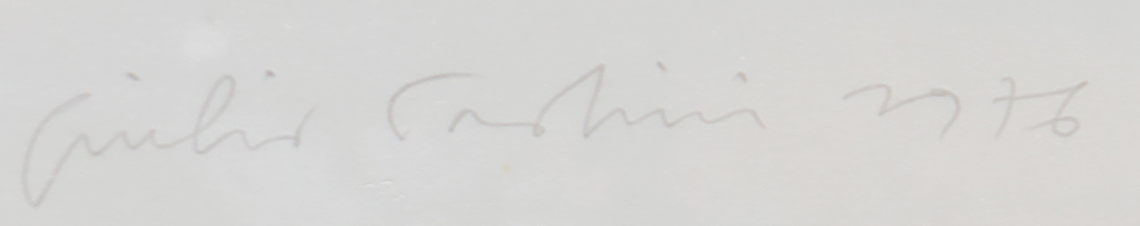 PAOLINI GIULIO (n. 1940) Senza titolo. 1976. Litografia. Cm 70,00 x 50,00. IX/X. Tiratura, firma e anno in basso a matita. Timbro a secco Multilab, Genova in basso a destra. . Cornice presente