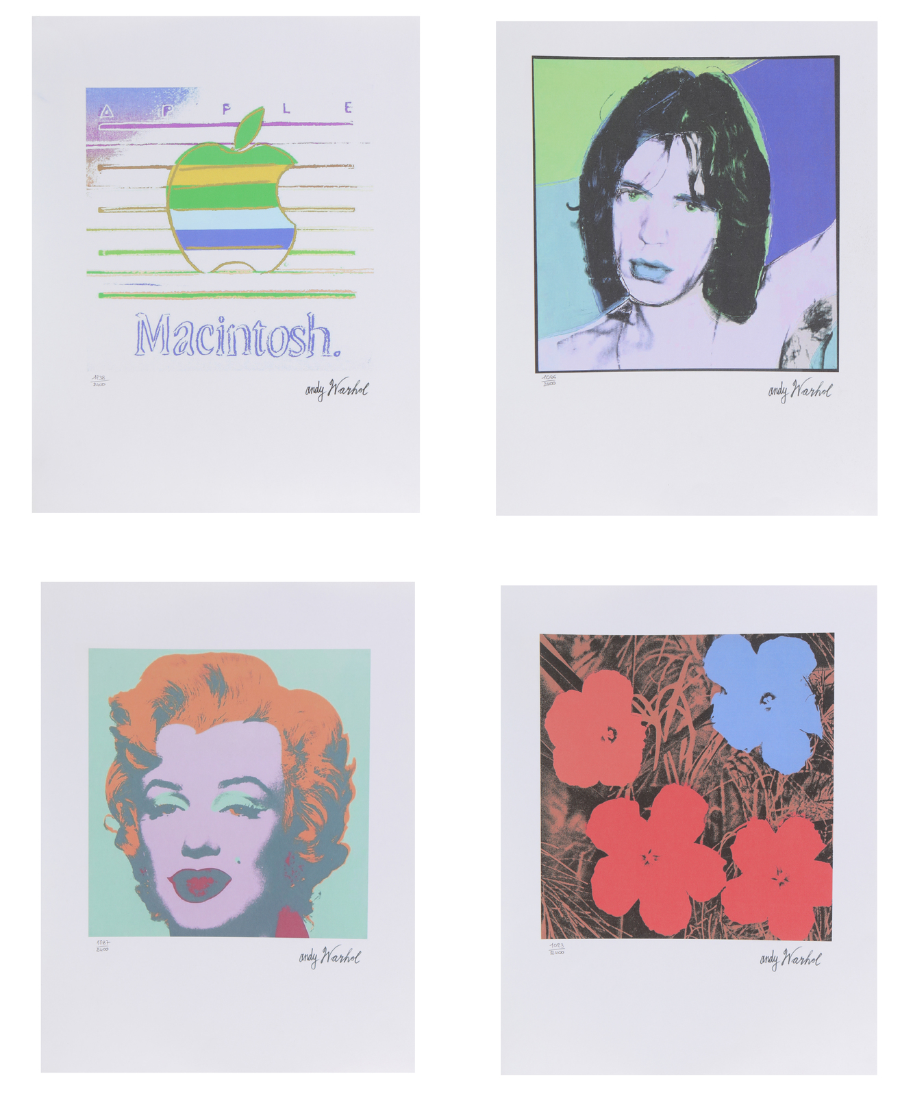 WARHOL ANDY (1928 - 1987) 4 serigraphs. Silkscreen printing. Cm 49,50 x 40,00. Edition in pencil and signature in the plate. Complete edition: 2400 copies.