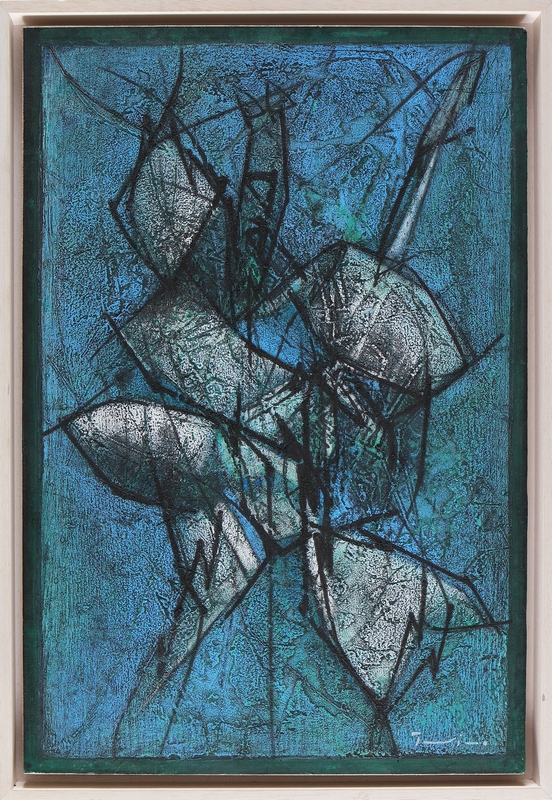 PROVINO SALVATORE (n. 1943) Untitled. Mixed media on paper mounted on canvas . Cm 60,00 x 40,00. Signature lower left. Cornice presente