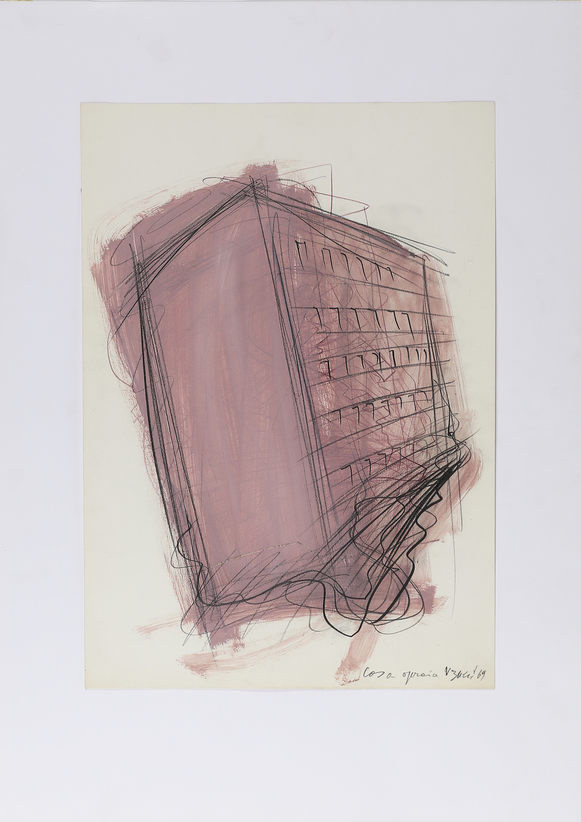 VAGLIERI TINO (1929 - 2000) Casa operaia. . 1969. Tecnica mista su carta. Cm...