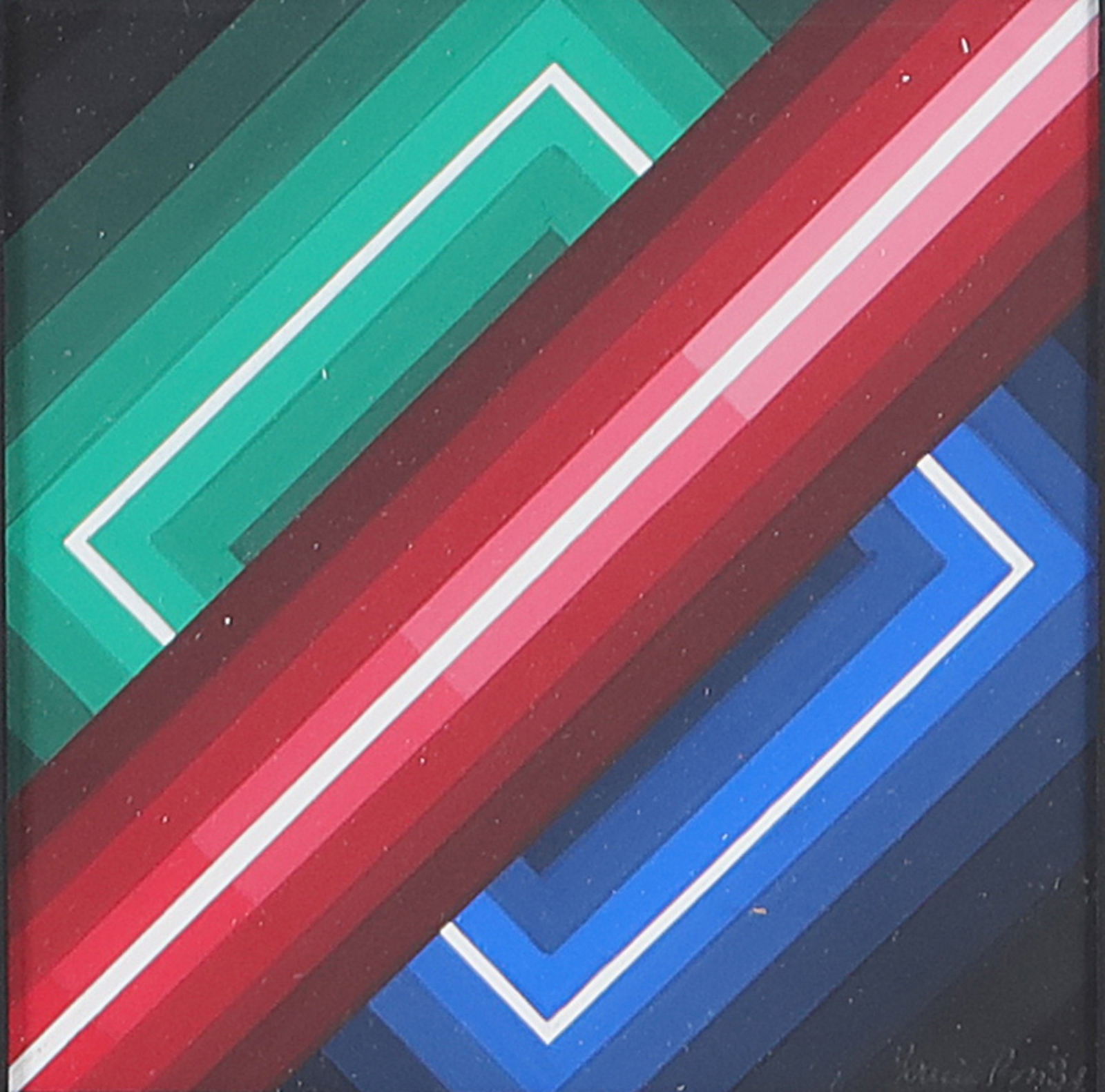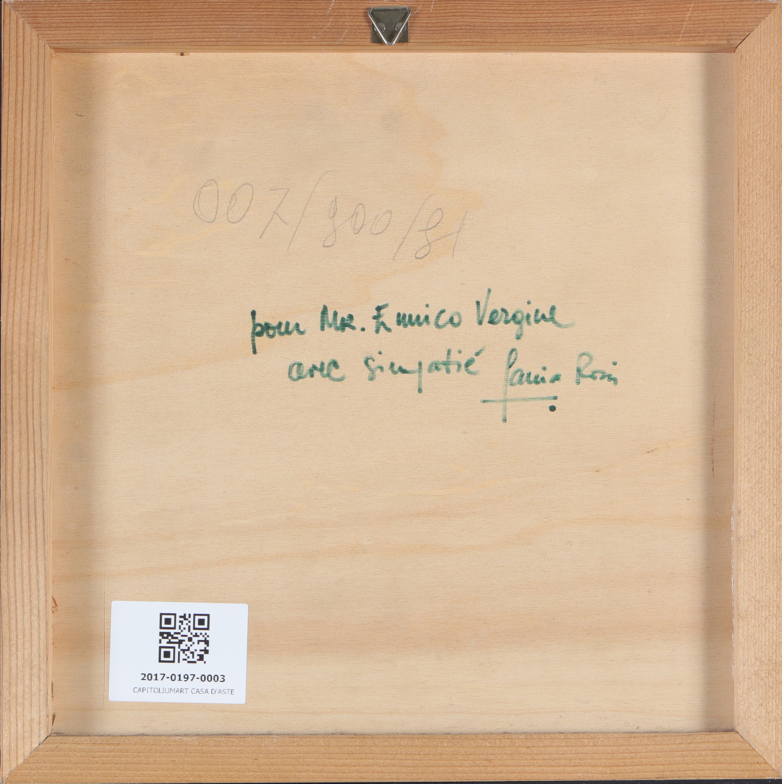 ROSSI HORACIO GARCIA (n. 1929) Senza titolo. 1981. Tecnica mista su cartoncino. Cm 10,00 x 10,00. Firma in basso a destra. Al retro dedica. Cornice presente