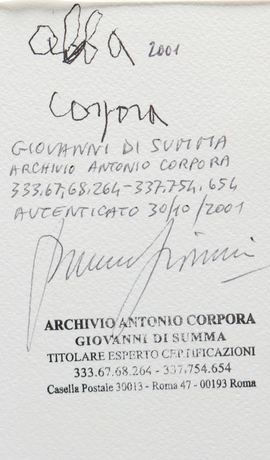 CORPORA ANTONIO (1909 - 2004) Alba. 2001. Acquarello su cartone. Cm 36,00 x 51,00. Firma in basso a destra. Al retro timbro a cura dell'Archivio Antonio Corpora con firma Giovanni Di Summa, Roma. Autentica a cura dell Archivio Antonio Corpora - Giovanni di Summa, Roma come da documentazione fotografica allegata all'opera. Cornice presente