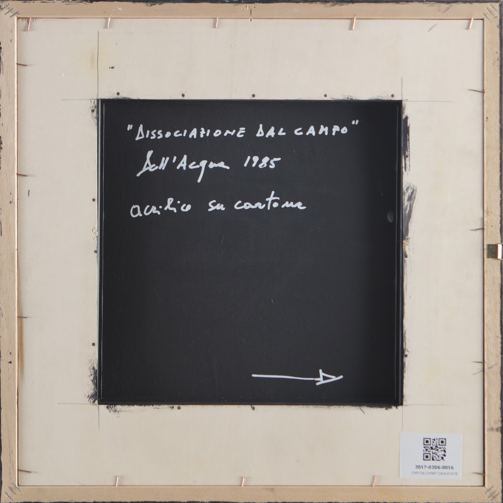 DELL'ACQUA GIOVANNI (n. 1952) Dissociazione dal campo. 1985. Acrilico su cartone. Cm 27,50 x 27,50. Al retro titolo, firma e anno. Autentica dell'artista su fotografia. Cornice presente