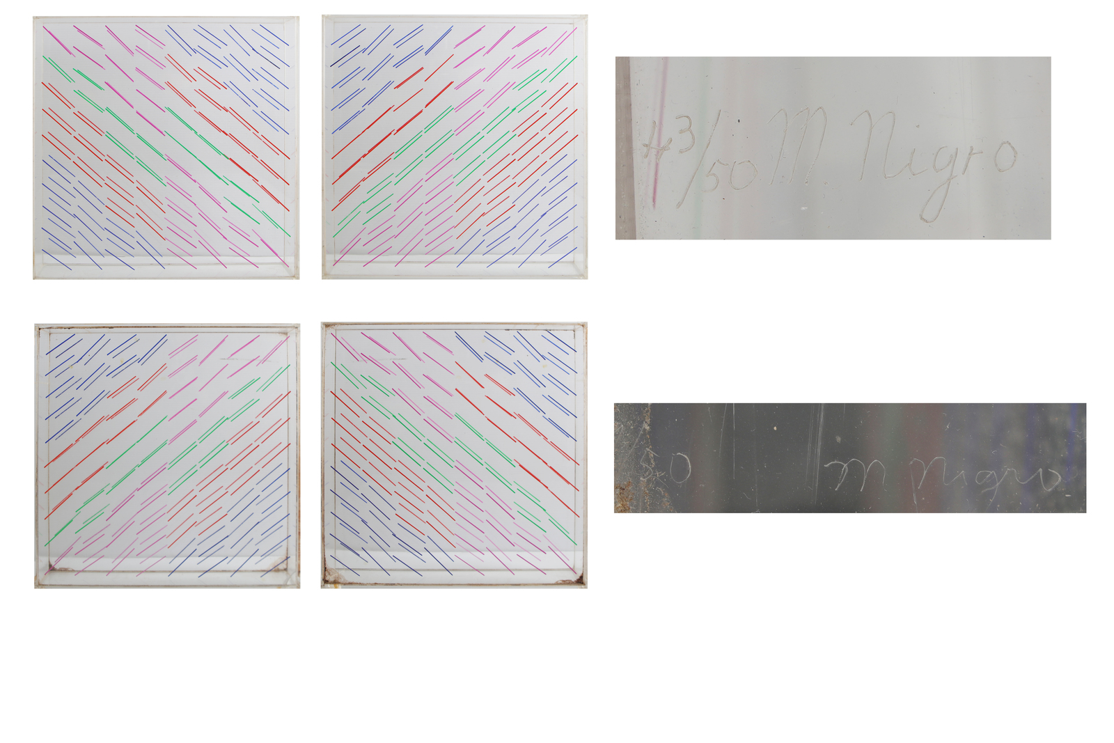 NIGRO MARIO (1917 - 1992) Two plexiglass sculptures. Plexiglass. Cm 60,00 x 60,00 x 10,00. 1. 43/50. Edition signature at the bottom. 2. 4/50. Edition and signature at the bottom.