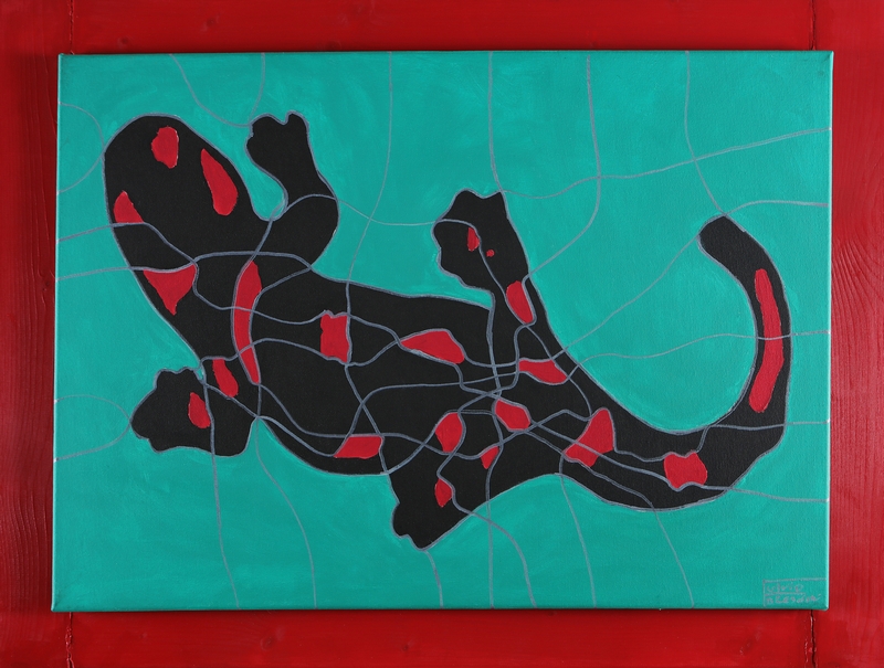 BRESCIANI FULVIO (n. 1968) Red Salamander. Acrylic on canvas. Cm 70,00 x 50,00. Signature lower right. Artist's label at the back.