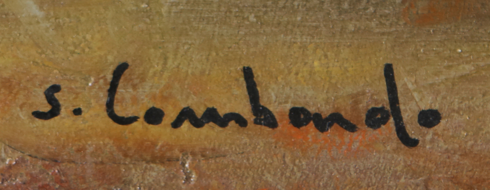 LOMBARDO SALVO (n. 1948) Senza titolo. . Olio su tela . Cm 70,00 x 60,00. Firma in basso a sinistra. Autentica dell'artista su fotografia. Cornice presente