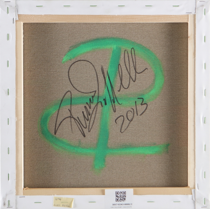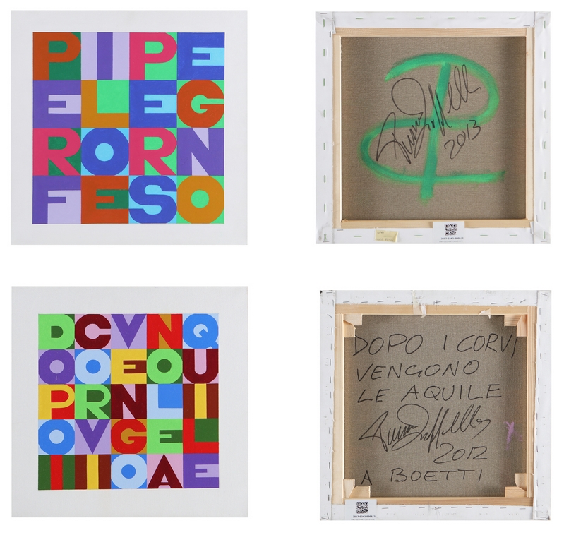ZAPPELLA PIERINO (n. 1946) Lot consists of two works. Oil on canvas . Cm 40,00 x 40,00. 1. At the back signature and year, 2013. 2. After the crows are the eagles. At the back: title, signature, the year 2012 and dedicated "A Boetti".
