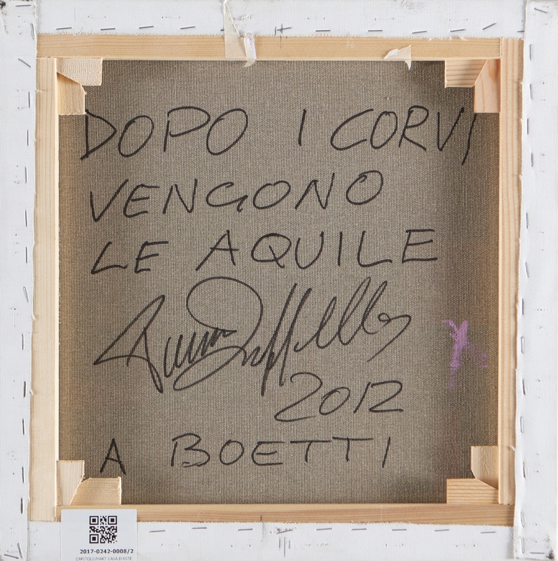 2. Dopo i corvi vengono le aquile. Al retro titolo, firma, anno 2012 e dedica "A Boetti".