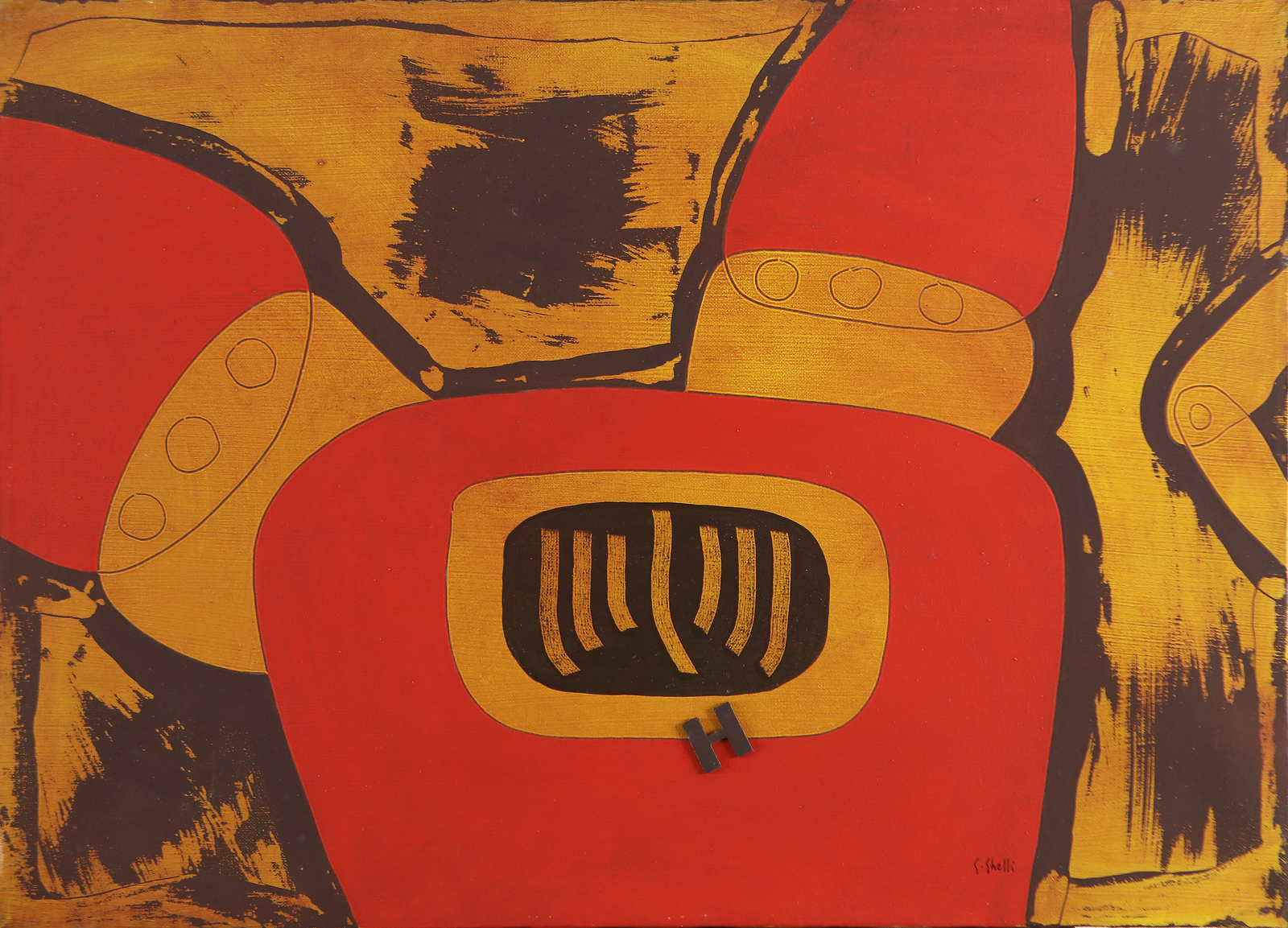 GHELLI GIULIANO Robot h. . Olio su tela . Cm 70,00 x 50,00. Firma in basso a...