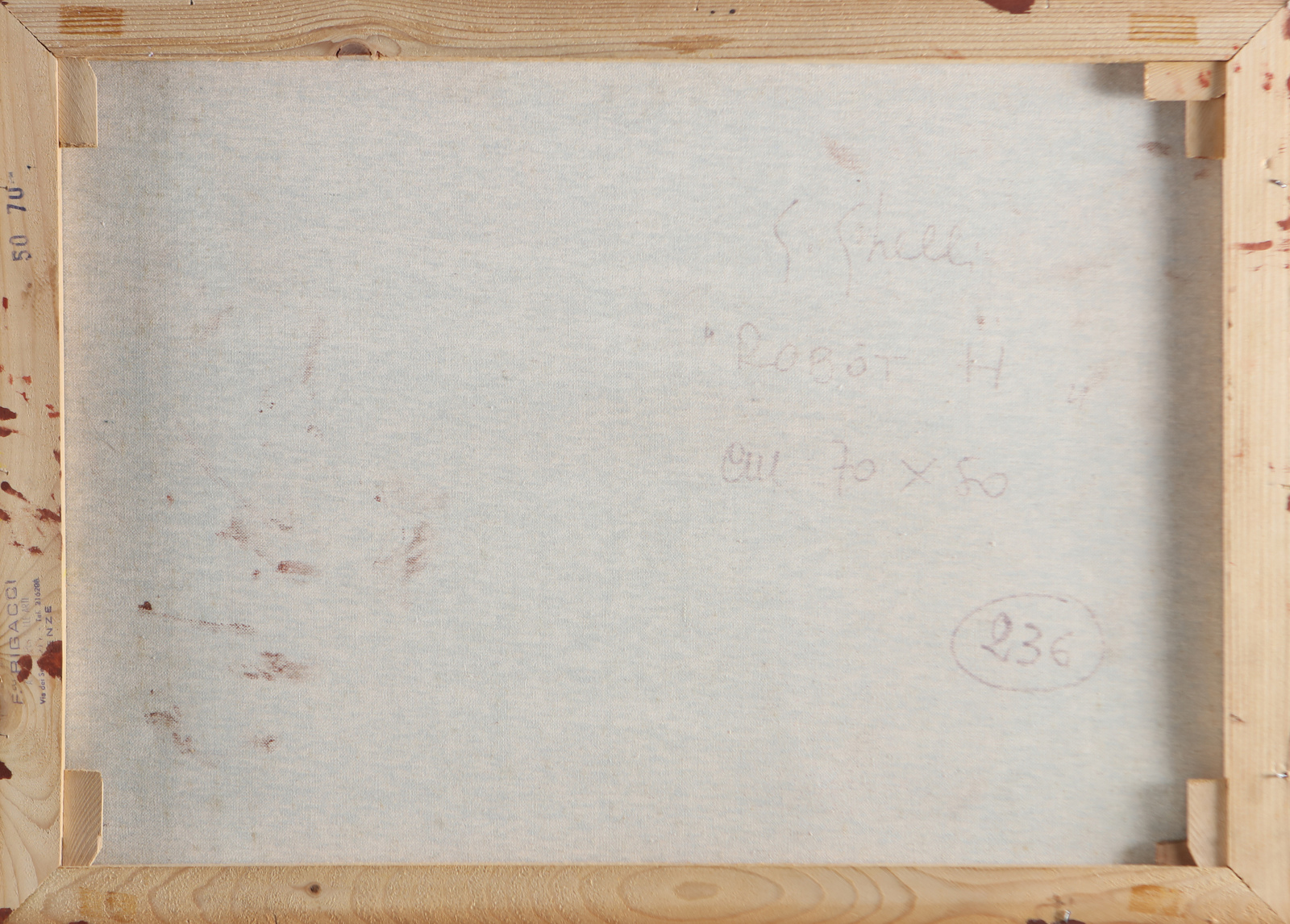 GHELLI GIULIANO Robot h. Oil on canvas . Cm 70,00 x 50,00. Signature lower right. Title and signature at the back.. Cornice presente