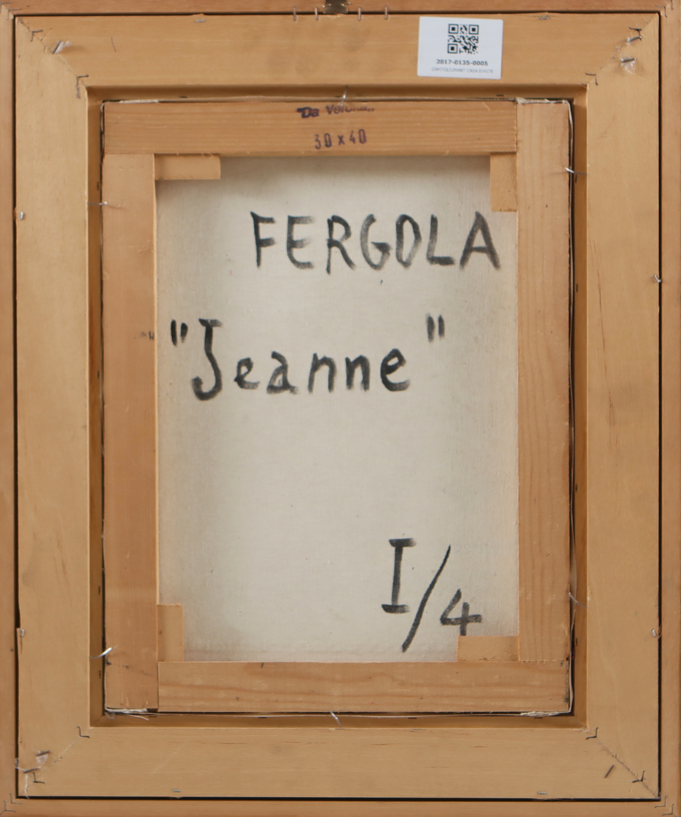 FERGOLA SERGIO (1936 - 1994) Jeanne. Olio su tela . Cm 30,00 x 40,00. Titolo in basso a sinistra e firma in basso a destra. Al retro titolo e firma. Cornice presente