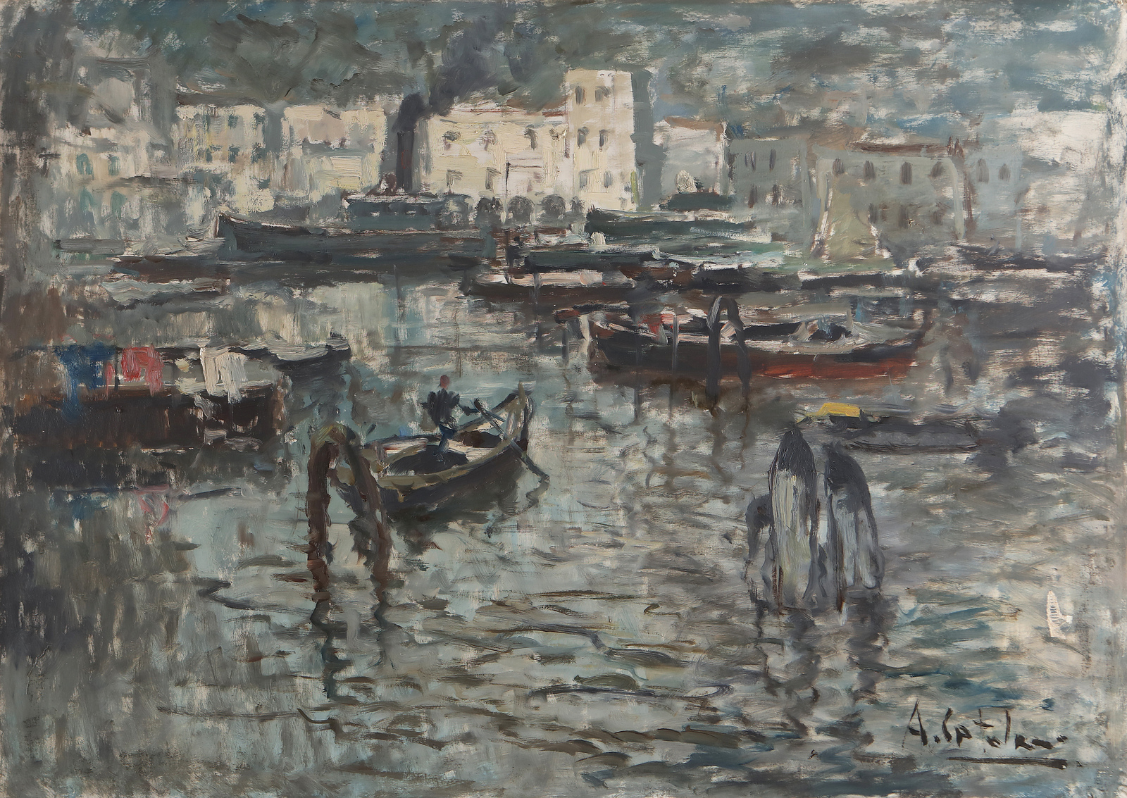 CATALANI ALESSANDRO (1897 - 1942) Untitled. Oil on canvas mounted on board. Cm 100,00 x 70,00. Present some flaws. Signature lower right.. Cornice presente