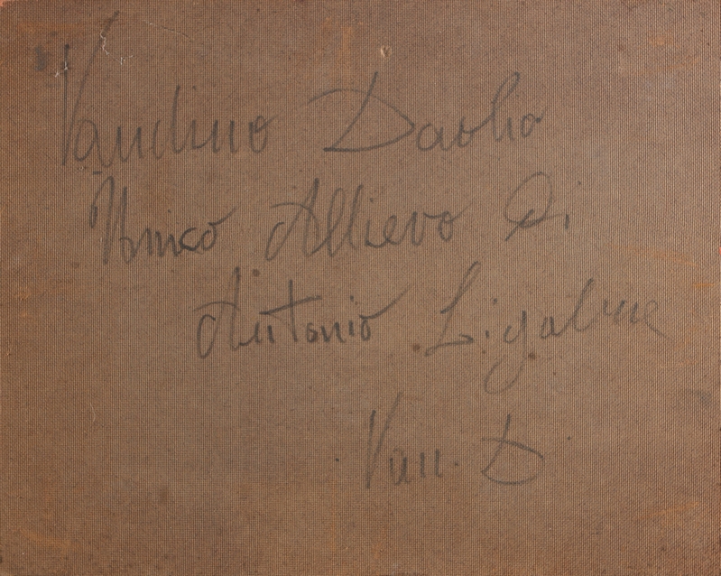 DAOLIO VANDINO (1920 - 2005) Senza titolo. . Olio su faesite. Cm 55,00 x 44,00. Firma in basso a destra. Al retro firma. Cornice presente