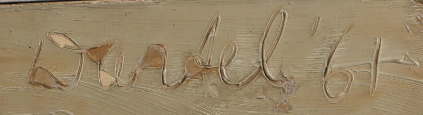 ANTON LUTJERINK (DARTEL) (n. 1928) Senza titolo. . 1961. Olio su tela . Cm 90,00 x 100,00. Firma e anno in alto a destra. Al retro firma e anno. leggere mancanze di colore. . Cornice presente
