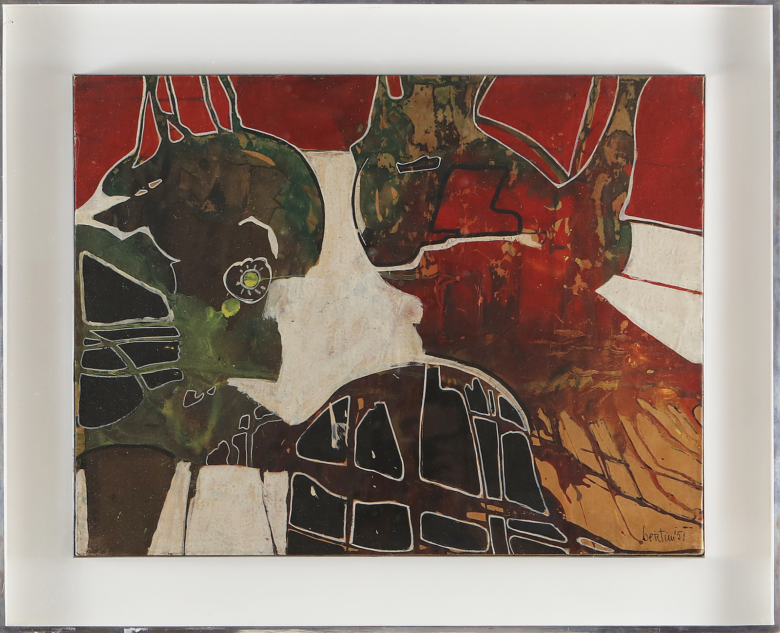 BERTINI GIANNI (1922 - 2010) Esplosione. 1951. Tecnica mista su carta intelata. Cm 65,00 x 50,00. Firma e anno in basso a destra. Al retro firma, anno, cartiglio a cura dello Studio Santandrea Milano e cartiglio descrittivo dell'Archivio Gianni Bertini. Opera archiviata presso l'Archivio Gianni Bertini, Frittelli Arte, Firenze, come da documentazione fotografica allegata all'opera riportante il relativo numero d'inventario.. Cornice presente