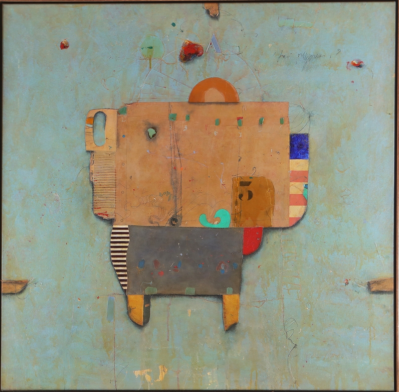 MORGAN COLE (n. 1950) Spokes. 1996. Mixed media on canvas. Cm 100,00 x 100,00. Signature and year lower right. At the back: title, signature, year and Il Naviglio Art Gallery, Milan, stamp.. Cornice presente