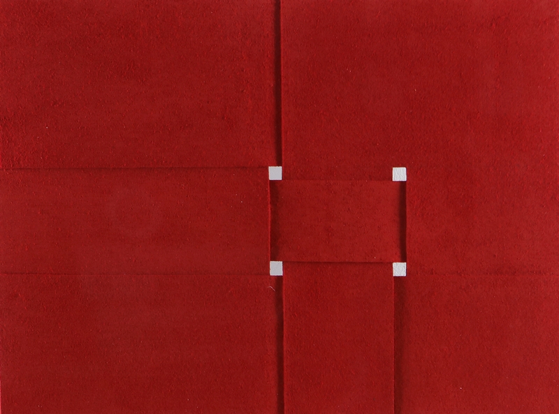 MARROCCO ARMANDO (n. 1939) Weaving. 1970. Acrylic on fabric. Cm 41,50 x 30,40. At the back: title, signature, year and Associazione Culturale Mercato del Sale, Milano, label. Artist's authenticity certificate on photo showing its inventory number. In a plexiglass case.