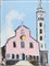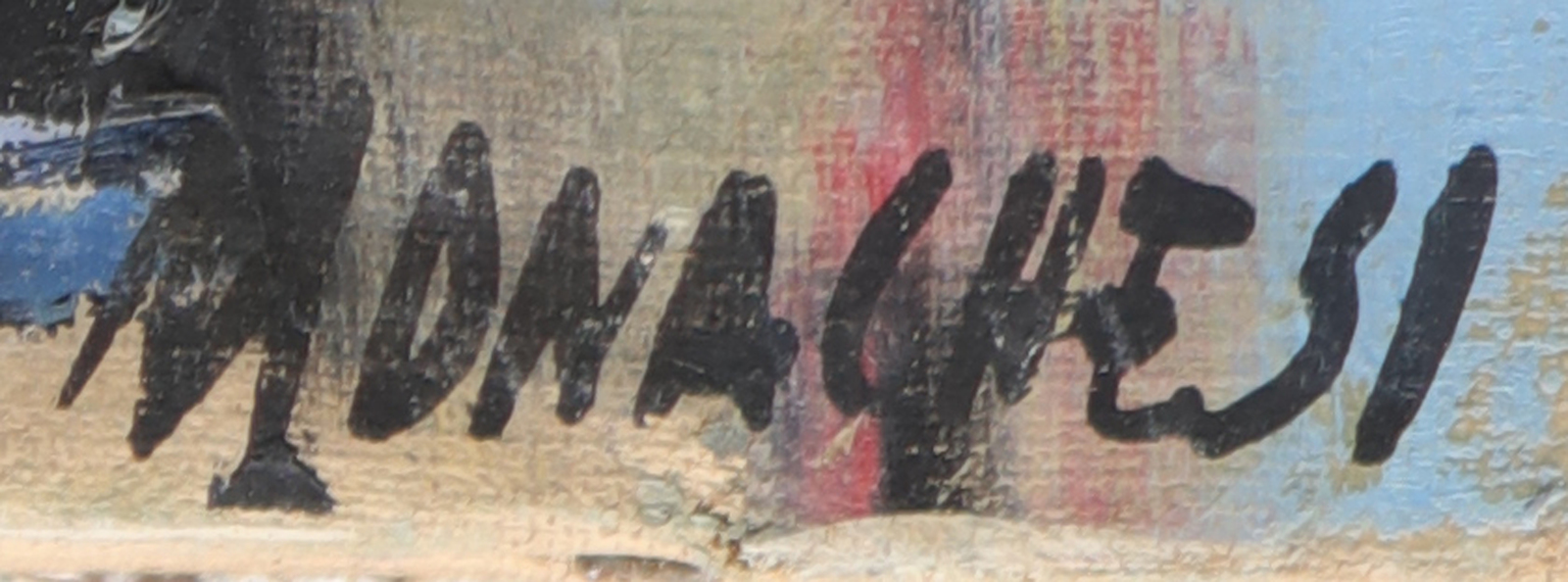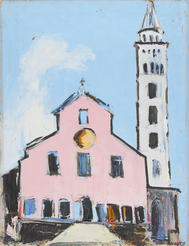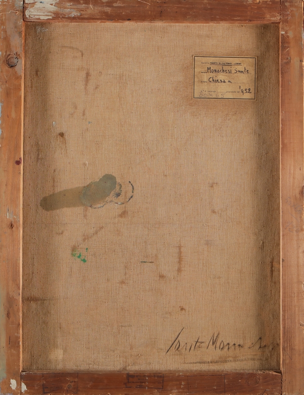 MONACHESI SANTE (1910 - 1991) Church. Oil on canvas . Cm 50,00 x 65,00. Signature lower right and at the back. Provenance: Grattacielo Pagani, Gallery. Cornice presente