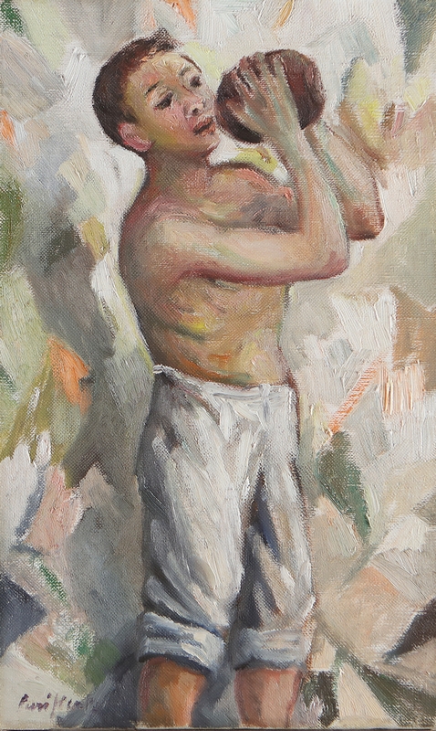 PURIFICATO DOMENICO (1915 - 1984) Senza titolo. Olio su tela . Cm 30,50 x 50,00. Firma in basso a sinistra.